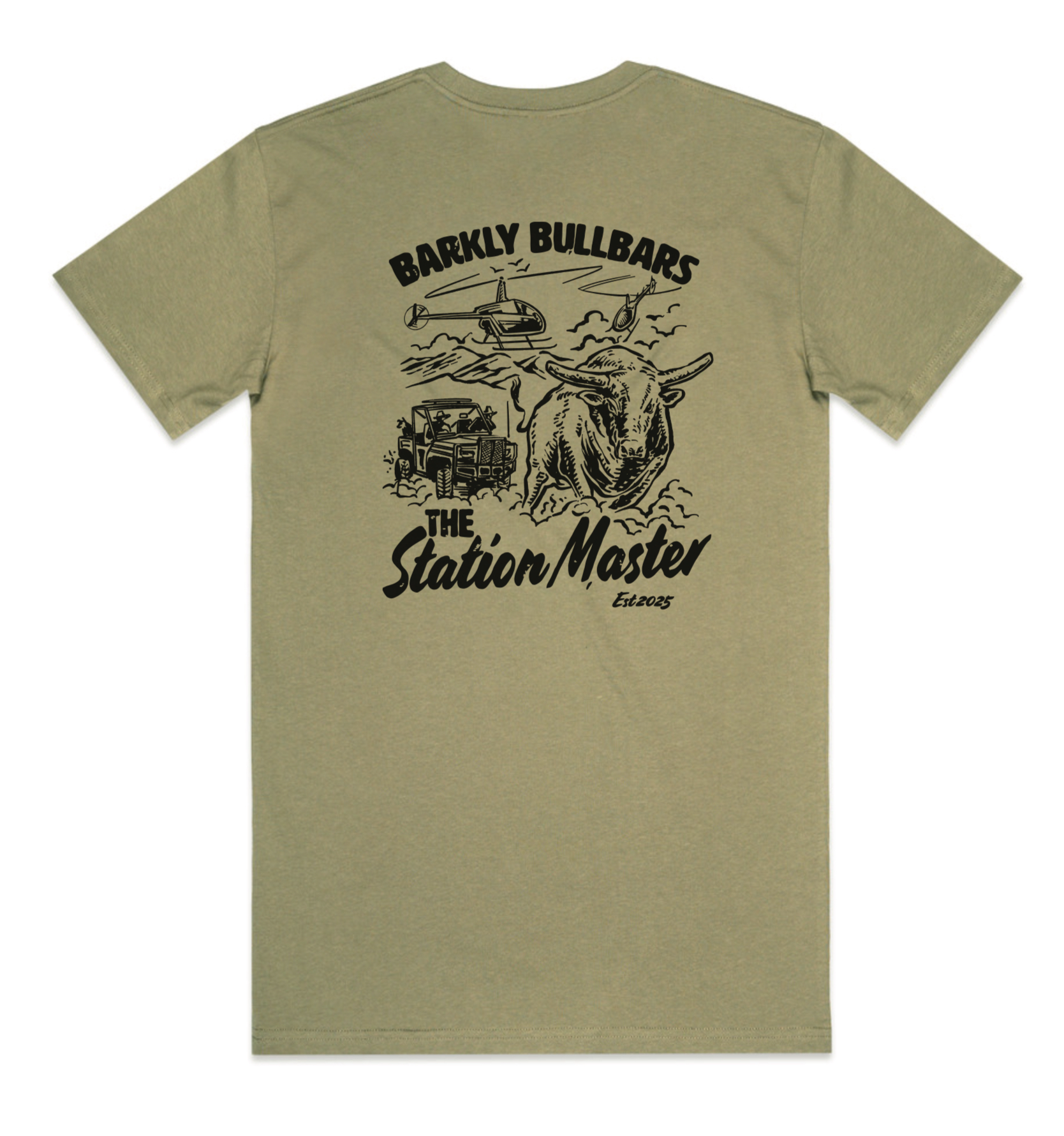 Tough, classic, and made for the outdoors — The Station Master tee in Olive Green is all about that rugged outback spirit. With a bold design on the back, it’s a nod to life on the land.